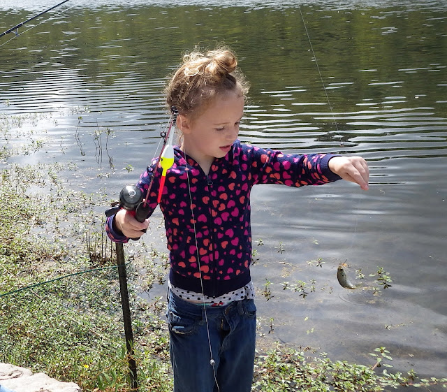 My granddaughter Iris started kindergarten a couple of weeks ago. Before the first day of school she and her Mom had a Girls' Day Out on which Iris could choose to do whatever she wanted. She chose to go fishing!